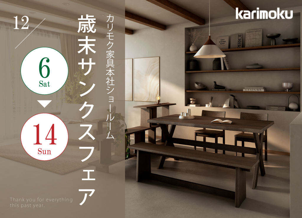カリモク家具は正規の販売店を通してご購入いただくことができます。お近くのイベントにご参加いただき、ご要望を伺った上で生産に入ります。ご注文から1週間程度でお届けできる場合もありますが、オーダー製品の場合はご注文から1~2カ月をご予定ください。