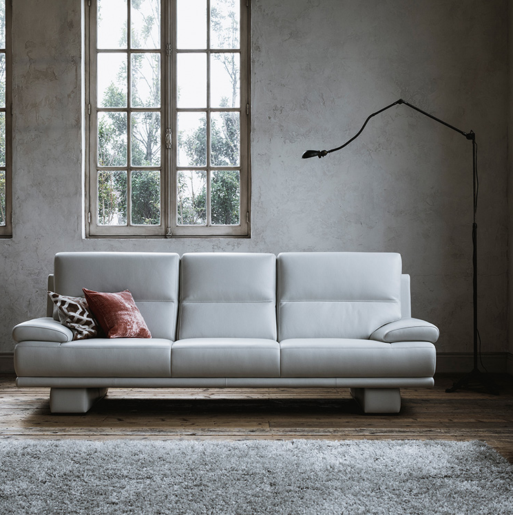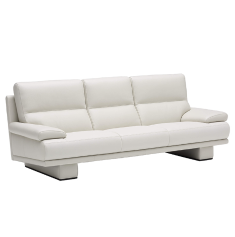 張地はホワイト系、脚部はブラックで構成されたモノトーン配色のソファ。直線的ですっきりしたデザインのため、空間全体をシャープに引き締めつつ、革張りの質感が上品さをプラスします。リビングの主役家具として、モノトーンインテリアのベースづくりにおすすめです。