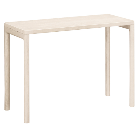 オーク材の木目がうっすら見える塗装仕上げで、白系のすっきり感と素材の柔らかさを両立したデザインが特徴です。完全な白塗装とは異なり、木の色味が透けて見えることでニュートラルカラーに近い自然な印象をつくり出します。