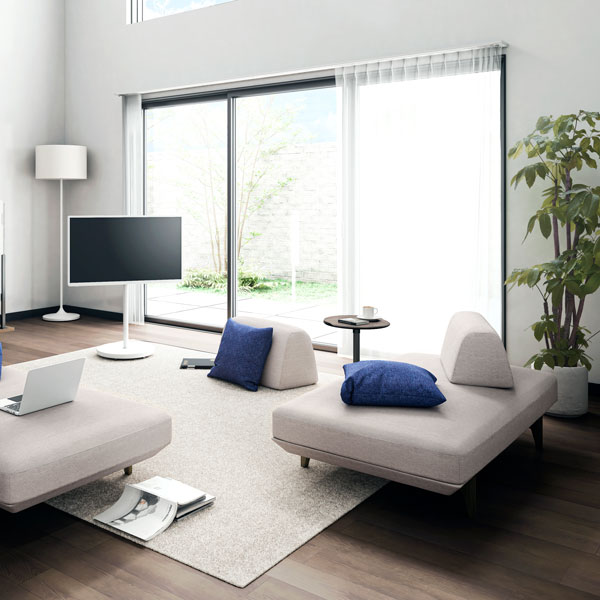 こちらはソファ人気NO.1の「ZU46/UU46」モデルです。背もたれが高く、座面やアーム部分と一体になったような流体デザイン。座ると、まるで包み込まれるようなリラックス感をお楽しみいただけます。一見してシンプル、そして美しいデザインですが、それは快適さや心地よさといった本来の家具の意味が追究された結果といえます。